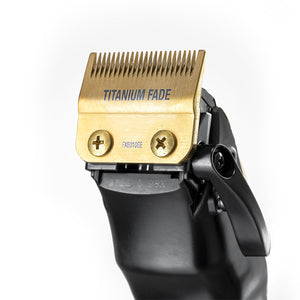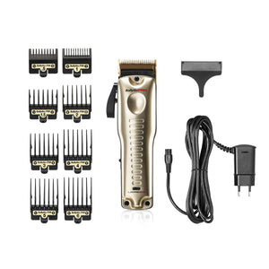 Le clipper Babyliss Pro Lo Pro Gold est une tondeuse de coupe avec le moteur digital haute performance à couple élevé de 6 800 tr/min. Cette tondeuse est très polyvalente, elle permet de couper dans la masse comme de dégradé avec précision. Le corps de la tondeuse en métal doré rappelle l'ergonomie des tondeuses de coupe classique. Le levier est à clic. Cette tondeuse est équipée d'une lame de 45 mm TITANIUM FADE Gold. La batterie a une autonomie maximale de 140 minutes, avec une charge de 240 minutes. 8 sabots de 1,5 à 19 mm. Poids : 310 g