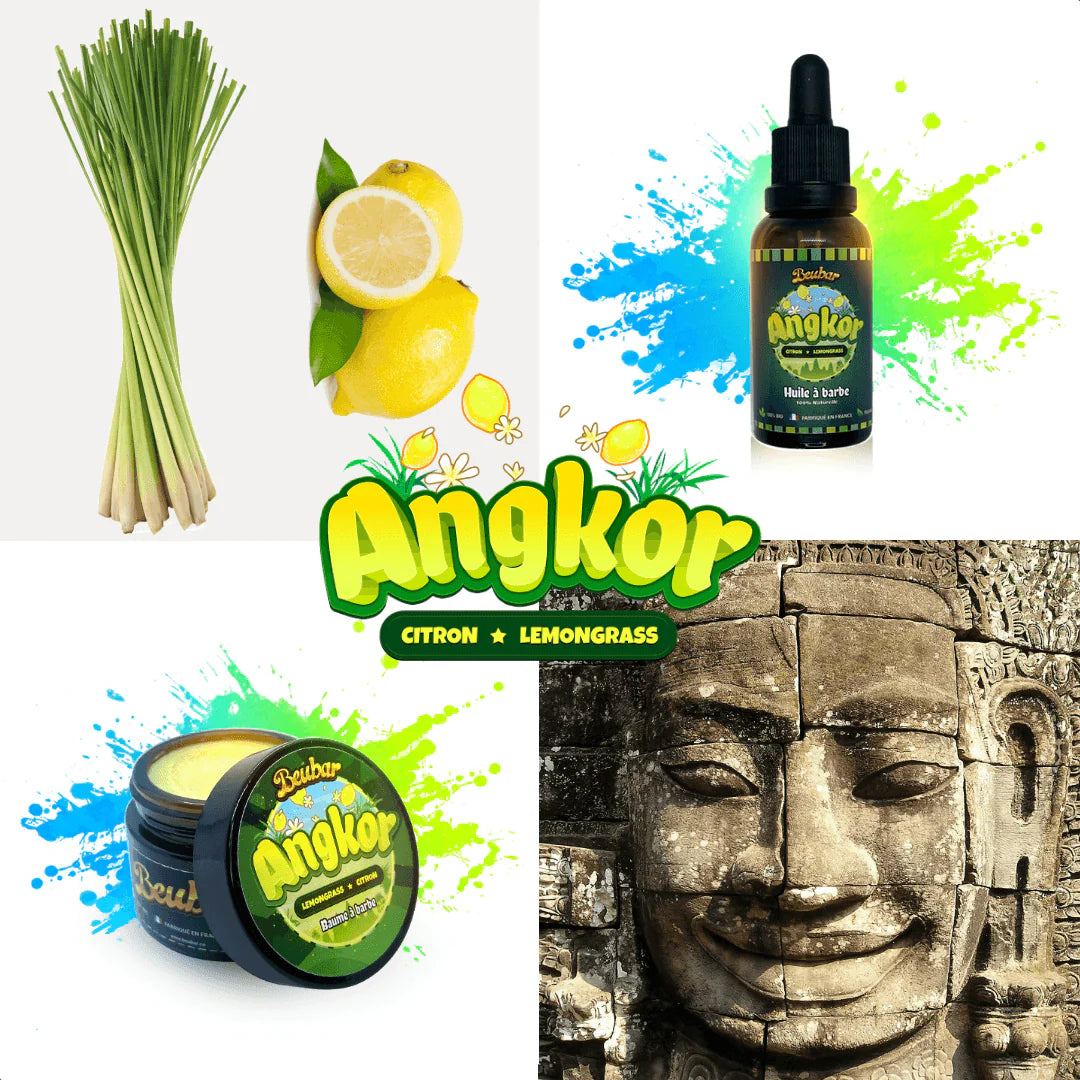 L'huile à barbe Angkor (Citron & Lemongrass) est formulée avec des huiles de très hautes qualités naturelles et bio qui hydrate en profondeur le bulbe, la peau et le poil de barbe pour une barbe saine et nourrie. Cette huile Beubar pour barbe est conditionnée dans un élégant flacon pompe de 30 mL, idéal pour une application facile et précise. Son parfum unique de citronnelle et de citron apporte de la fraicheur et vous enverra vous et votre barbe en voyage en Asie du Sud-Est.