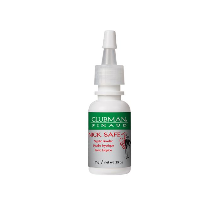 Une coupure ou un point de sang dut au rasage ? Vous ne voulez pas tacher vos vêtements ou celui de votre client. Pour ça, nous avons la solution ! Refermez instantanément la plaie grâce à la poudre styptique Clubman Nick Safe ! Cette poudre puissante anti-coupure est formulée spécialement pour arrêter les saignements et les infections. Parfait pour un usage domestique ou professionnel ! Le flacon dispose d'une embouchure fine qui facilite la dispersion en dose très précise afin de ne pas gâcher de produit et mettre le strict nécessaire.