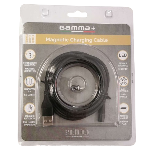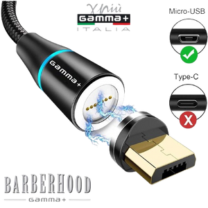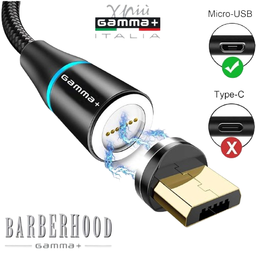 Le Gamma+ Câble de charge magnétique pour tondeuse permet de charger vos tondeuses en un mouvement. Il suffit d'équiper vos tondeuses Micro-USB avec le petit plug et d'y connecter en un instant le câble magnétique pour mettre votre matériel de barber en charge.