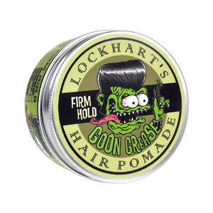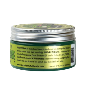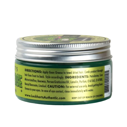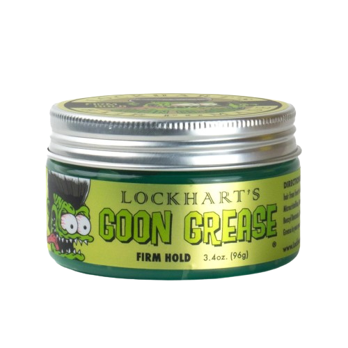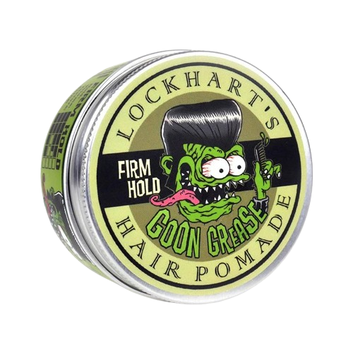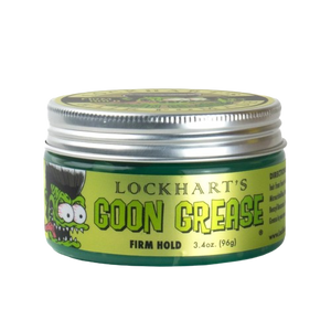 La Goon Grease de Lockhart est une pommade tenue forte avec une tenue lourde supérieure et une brillance supérieure ! C'est une cire de bad boy. Elle gardera vos cheveux coiffés et brillants toute la journée ! Parfaite pour les pompadours, jelly rolls, slick backs, et tout le reste !
