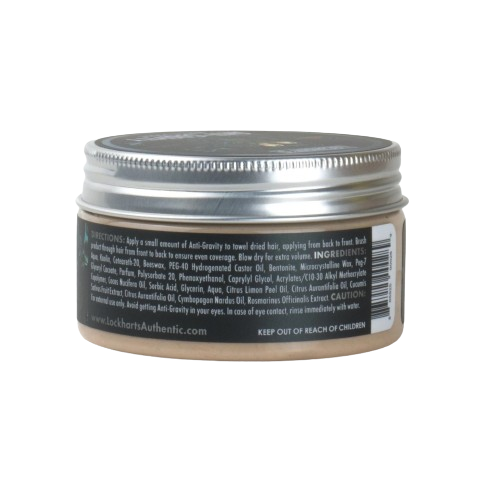 La cire coiffante Anti-Gravity de Lockhart's a été développé sur une période de deux ans. C'était la baleine blanche de Steven Lockhart. Ils ont créé cette formule, en essayant de réaliser ce qu'on pensait impossible depuis très longtemps, créer un produit hybride de plusieurs types de cire coiffante différents qui permet de donner du volume instantanément, énormément de texture et une fixation élevée tout en ayant un effet mat. La Anti-Gravity est un hybride pâte/clay/fibre/crème mate, le tout réuni dans une formule unique. Elle a la consistance d'une fibre légère, s'applique comme une crème, tient comme une pâte et apporte la texture et le volume d'une clay.