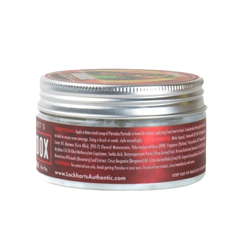 La cire coiffante Paradox de Lockhart's est une cire à base d'eau tenue forte avec une brillance naturelle dont le parfum frais et complexe est surnommé « Aqua Di Goon » par certain. La Lockhart's Paradox est une nouvelle version de la pommade à base d'eau. Ce n'est ni classique, ni « unorthodox », c'est un PARADOXE ! Steven Lockhart a peaufiné un mélange d'ingrédients naturels (huile de romarin, bergamote, citron vert, avocat, ricin...) et de co-polymeres pour avoir une tenue ferme qui reste flexible avec une sensation de légèreté comme si les cheveux étaient coiffés naturellement sans cires. Les ingrédients naturels fournissent aux cheveux les nutriments nécessaires pour garder vos cheveux forts et hydratés. Vous obtiendrez tous les avantages d'une pommade traditionnelle lourde avec la commodité d'une pommade moderne légère à base d'eau. PARADOXALE !